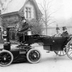 Duke Alexis of Russia on his modified carriage to use a electric landau tractor insteand of horses circa (1898)